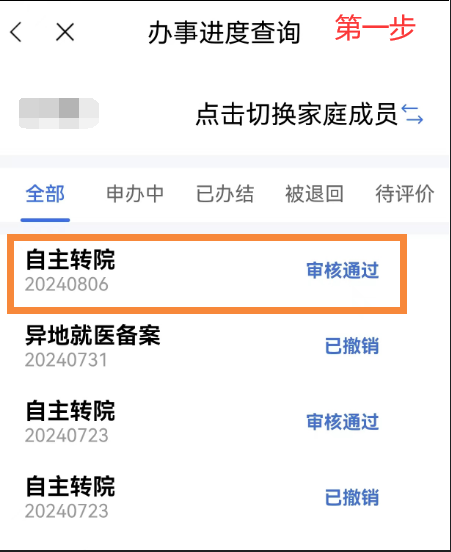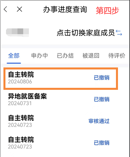 异地就医备案成功后,点击首页【我要查】-【办事进度查询】模块,在【办事进度查询】中选择已审核通过的需要撤销的备案信息,点击【撤