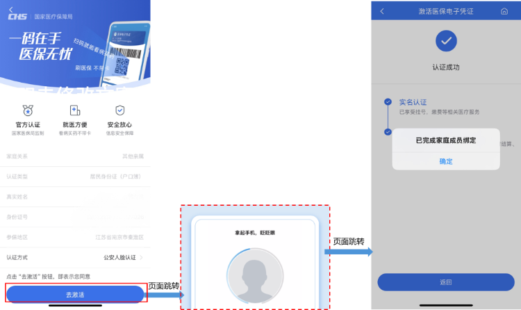 在【激活】页面,确认信息之后,点击【去激活】按钮,进入人脸识别,按照引导提示完成被绑人扫脸即可办理完成。