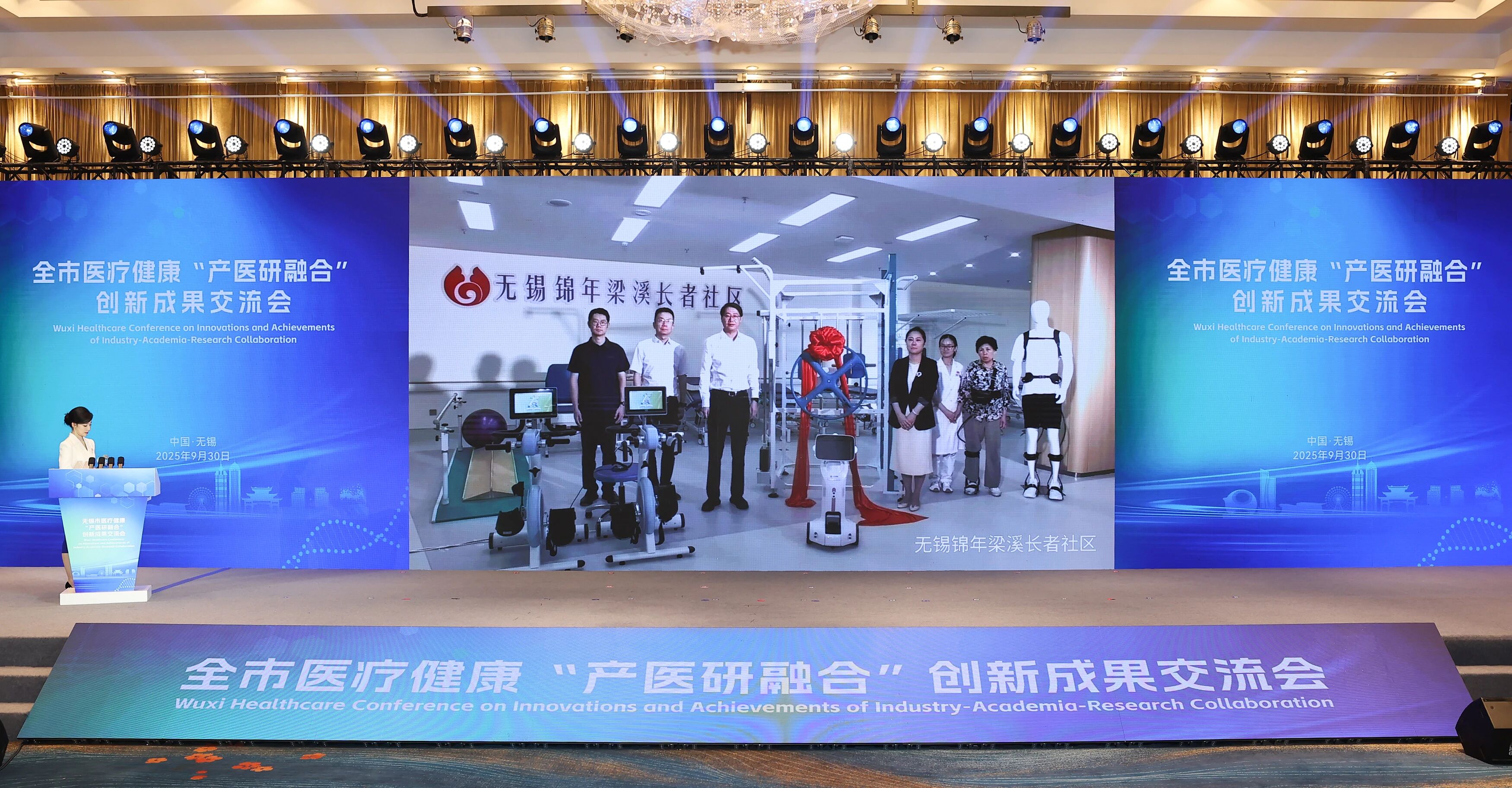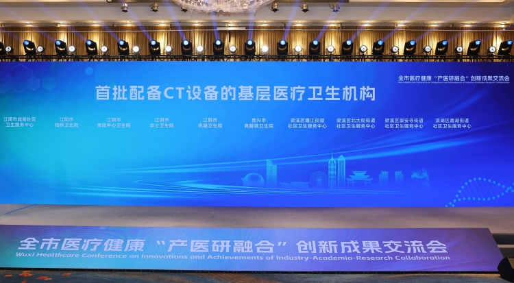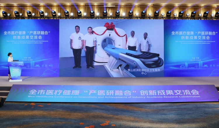 现场连线惠山区前洲街道社区卫生服务中心和无锡锦年梁溪长者社区,见证高标准CT设备和智能康养设备启用。