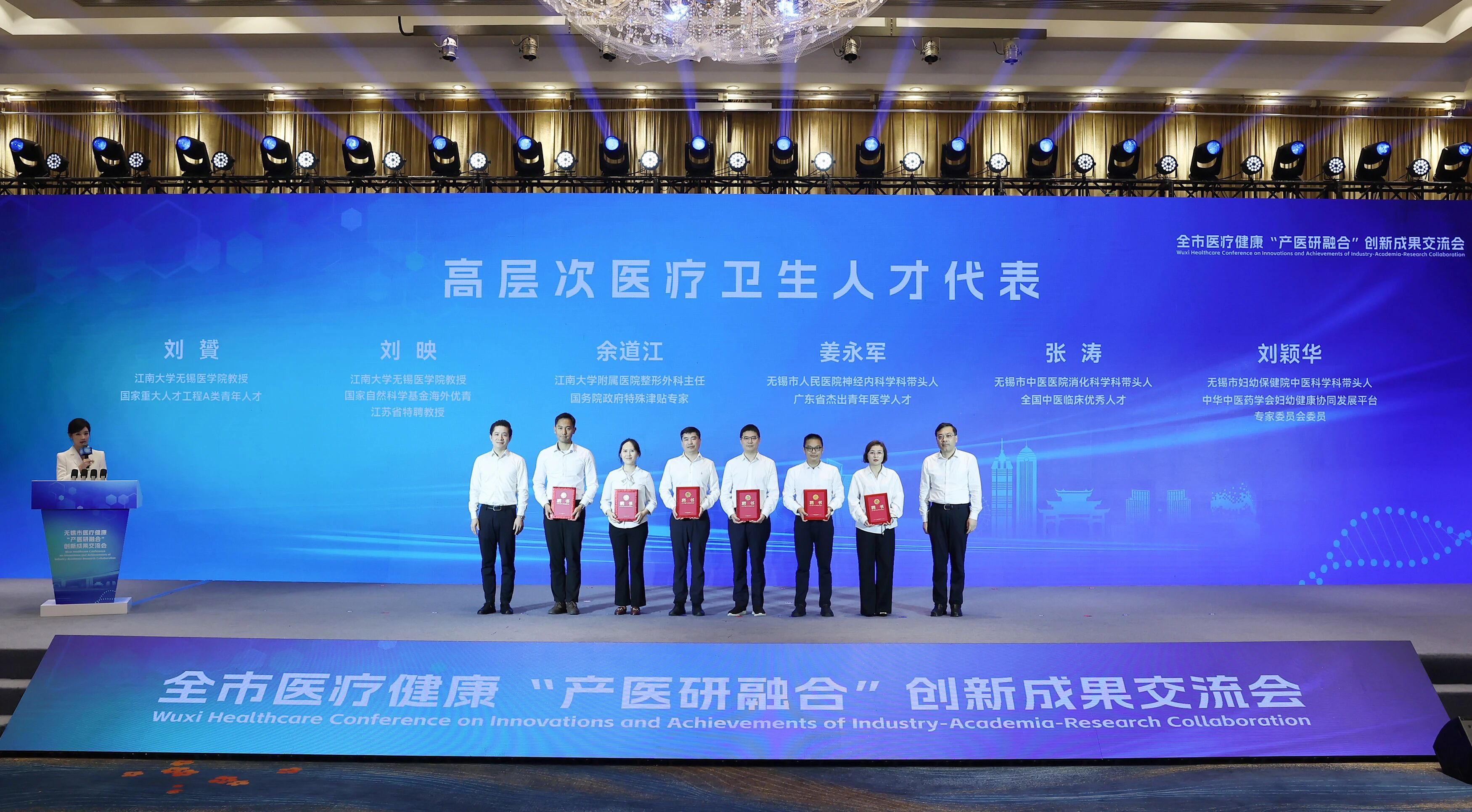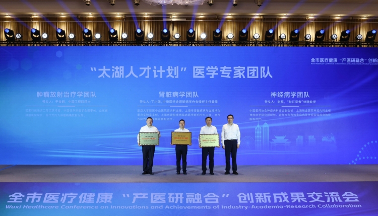 新引进的3个“太湖人才计划”医学专家团队、6位高层次医疗卫生人才代表分别接受授牌、获颁聘书。