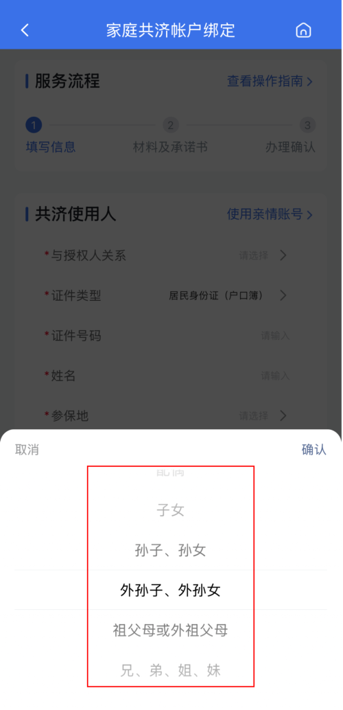 2. 主账户人和家庭成员需在正常参保状态才可设立家庭共济关系并正常使用。